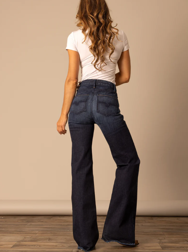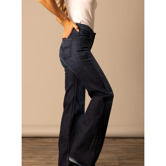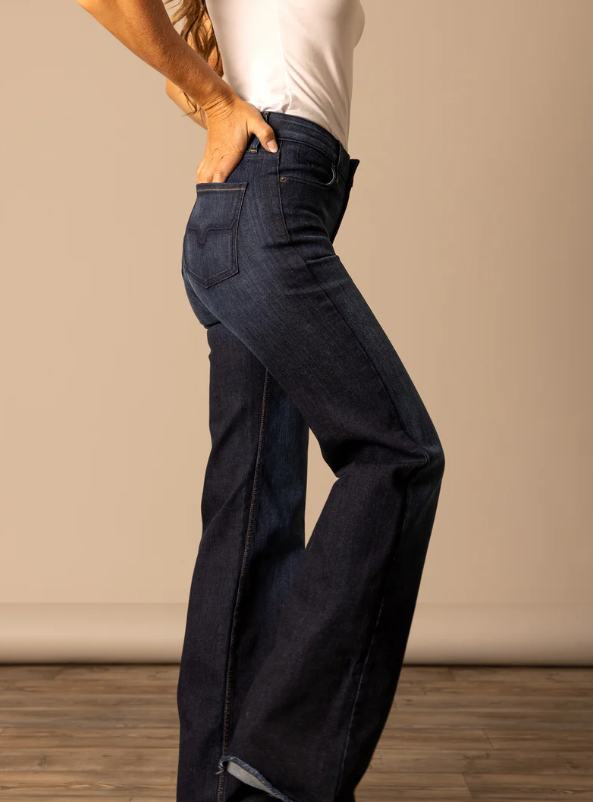 Fit: High Rise, Stove Top, Wide Leg with a Raw Hem